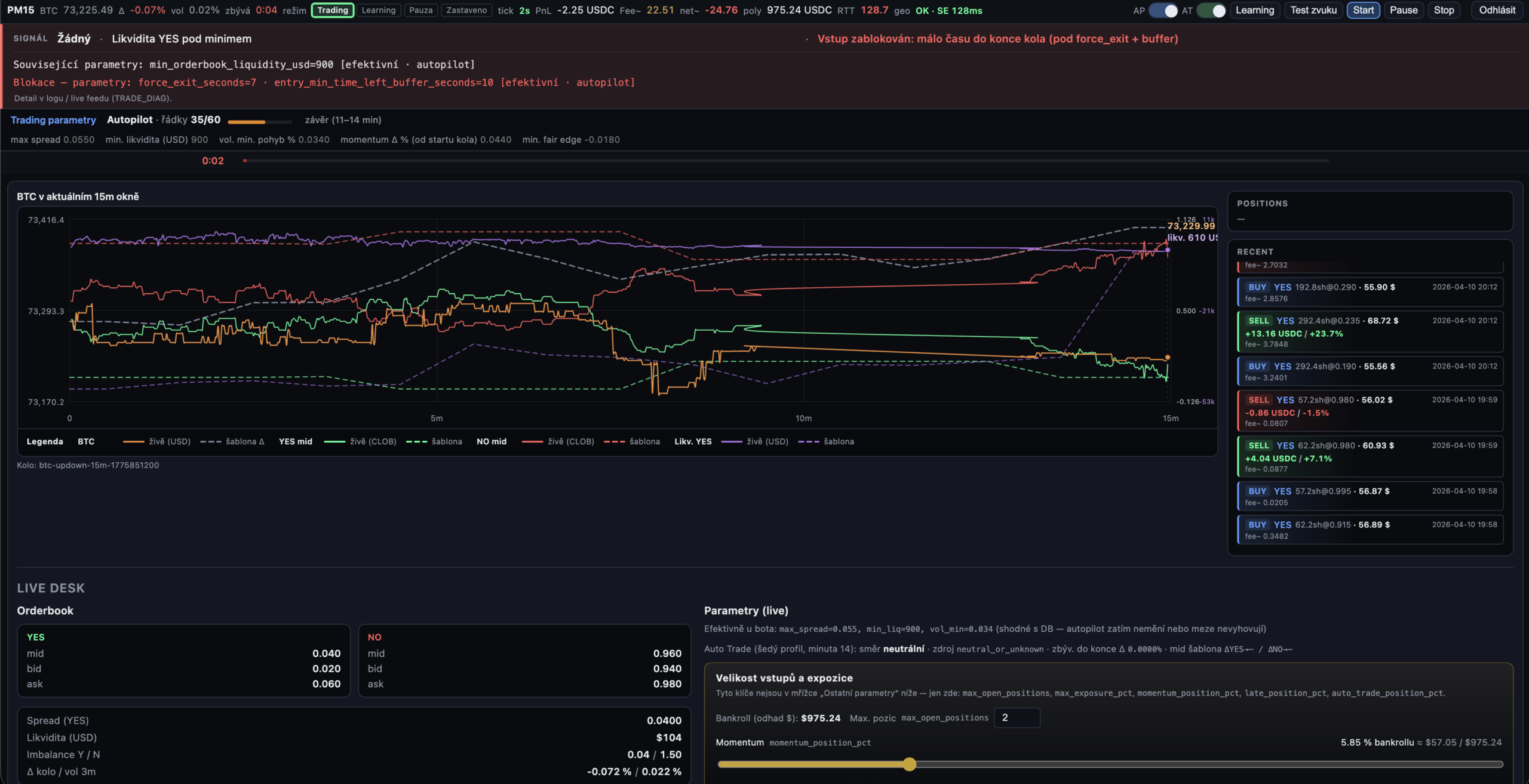 Trading model for BTC Up or Down market 15min. Autotrade + PostgreSQL backend.